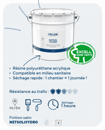 La peinture polyuréthane est dite bi-composant car elle comprend une base et un durcisseur. Le premier intérêt de la peinture polyuréthane est sa haute résistance. Au séchage, le film devient très dur, ce qui lui confère des caractéristiques adaptées aux trafics réguliers de personnes ou de véhicules. Cette résistance s’étend aux contraintes accidentelles comme le versement de produits chimiques ou aux nécessités du quotidien comme le nettoyage. La peinture polyuréthane est particulièrement recommandée en extérieur car elle offre une résistance durable aux UV.