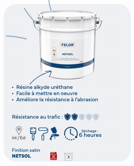 - La peinture-alkyde uréthane est adaptée aux garages à trafic peu régulier ou peu exposé. Vous obtiendrez une bonne résistance dans la durée, un aspect esthétique très satisfaisant et une facilité à l’application (mono-composant) et à l’entretien.