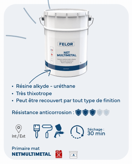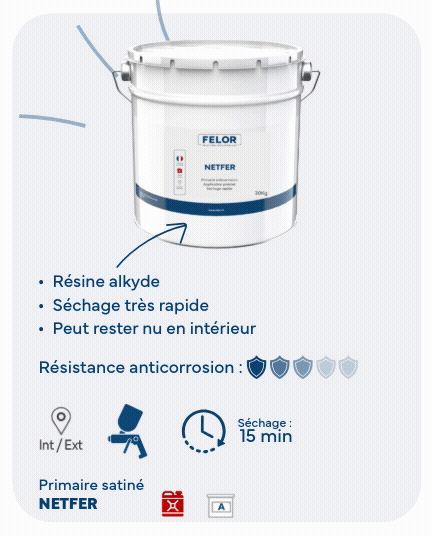 Faciles à appliquer NETMETALPRIM et NETRUST répondent à vos attentes. NETOXANE apportera une finition haut de gamme tandis que NETMARTELE et NETMETALLISE proposent des effets décoratifs.