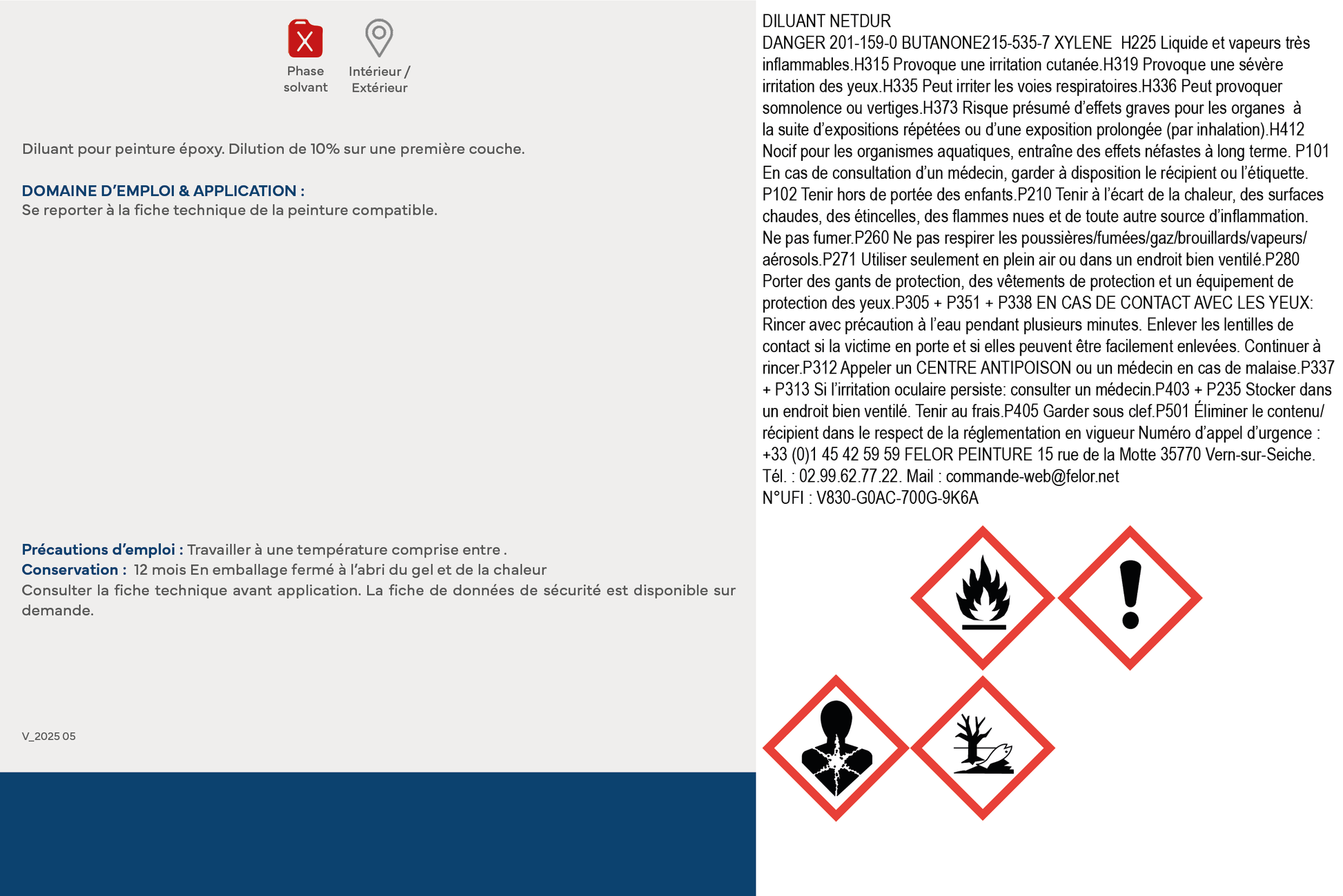 Consulter la fiche technique pour plus d'informations. La fiche de données de sécurité est disponible sur demande.