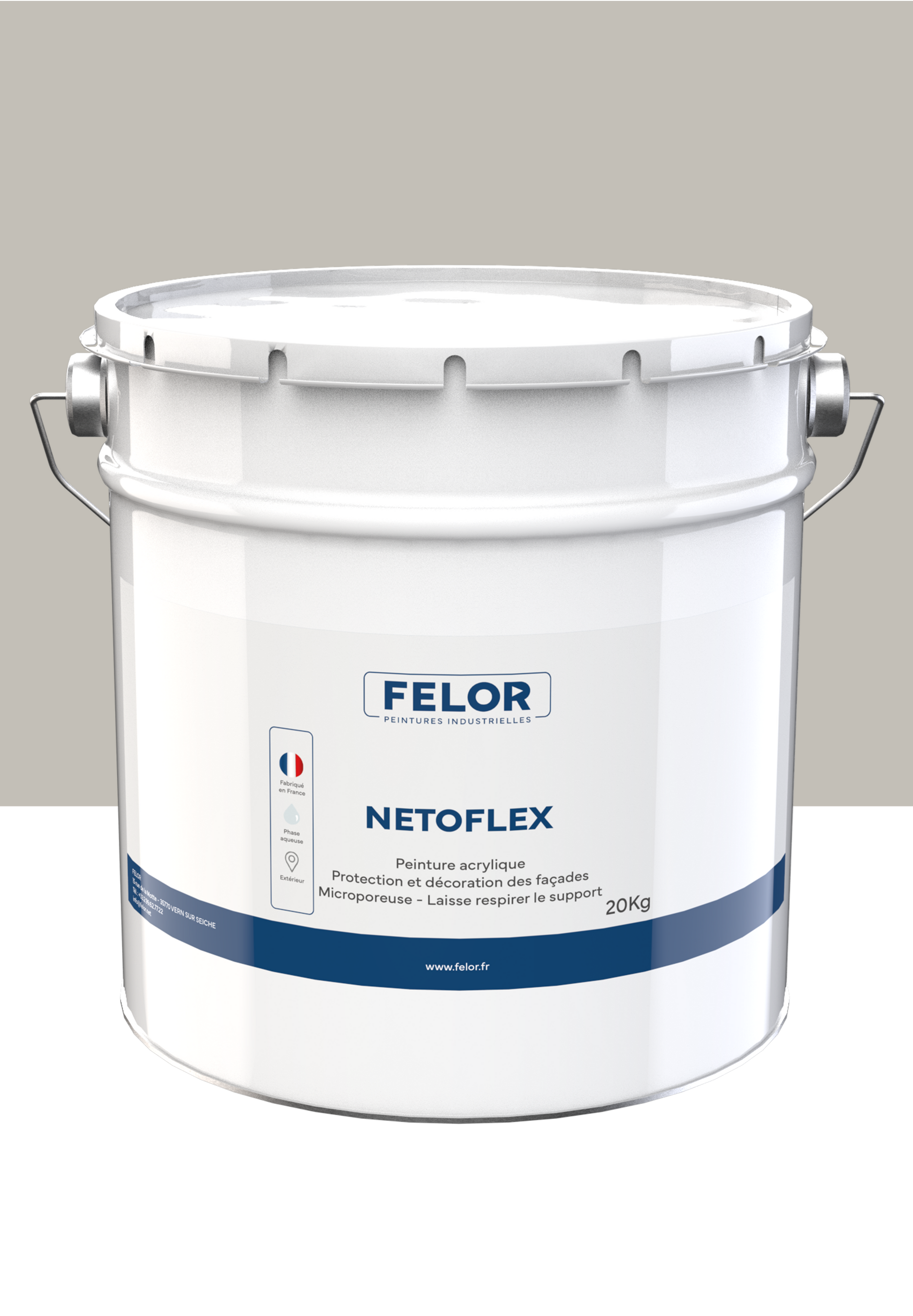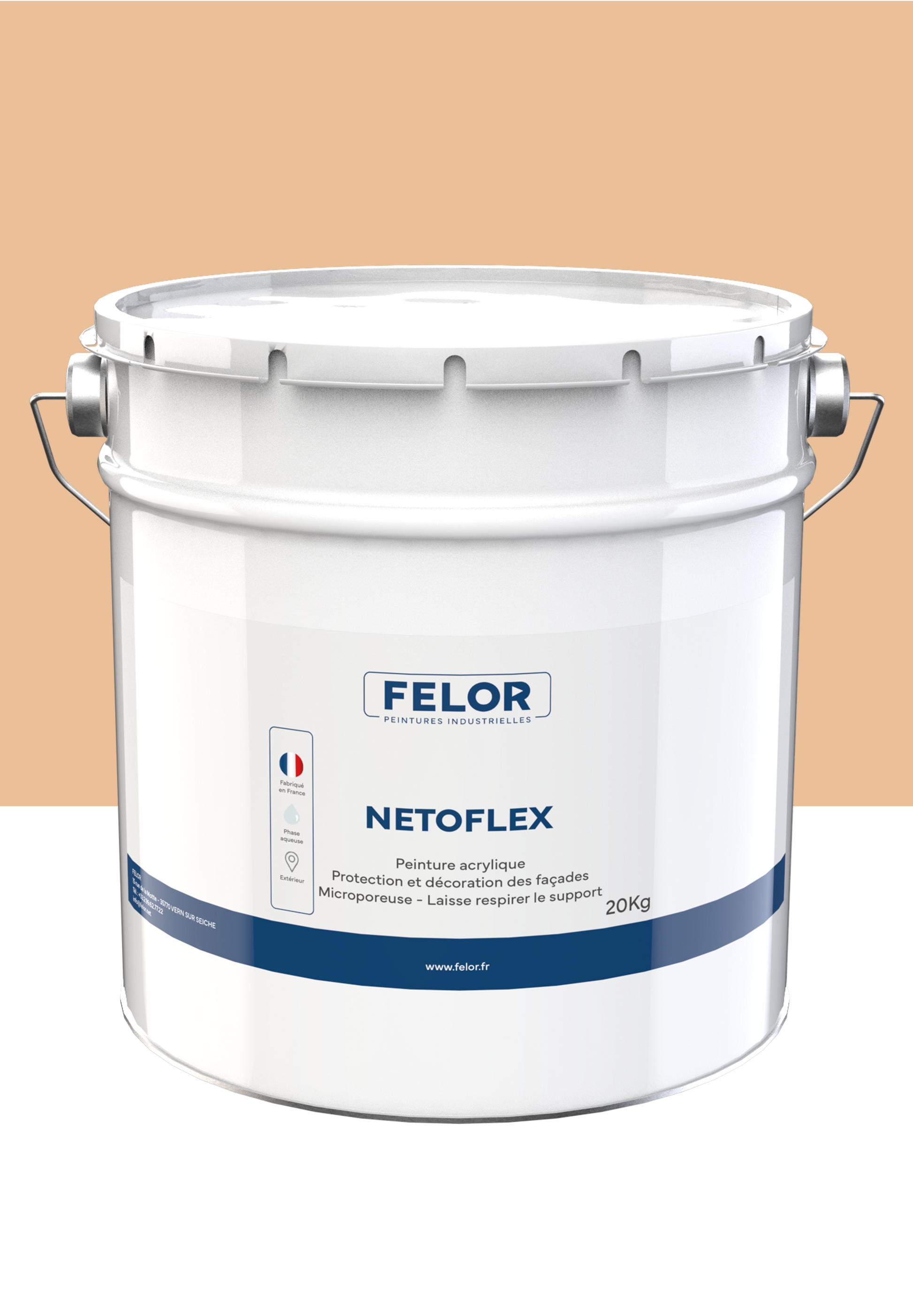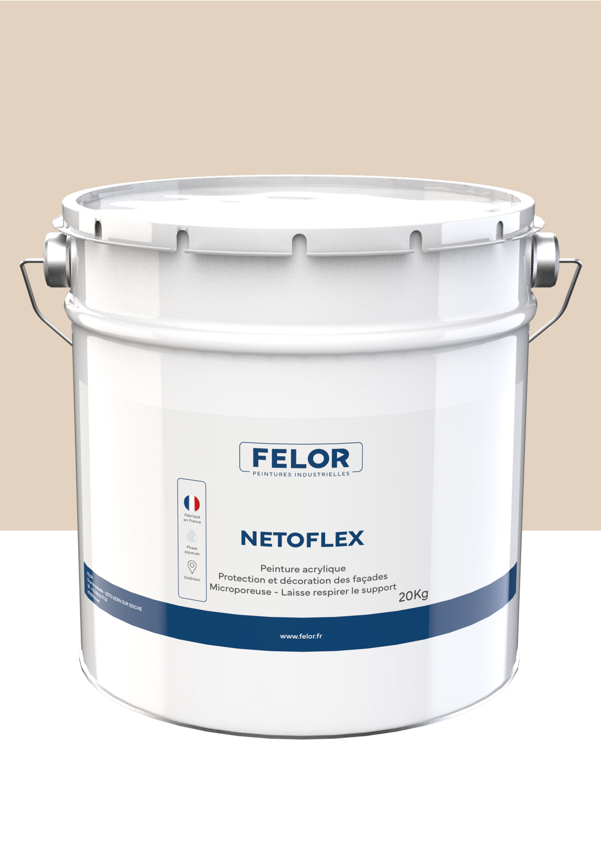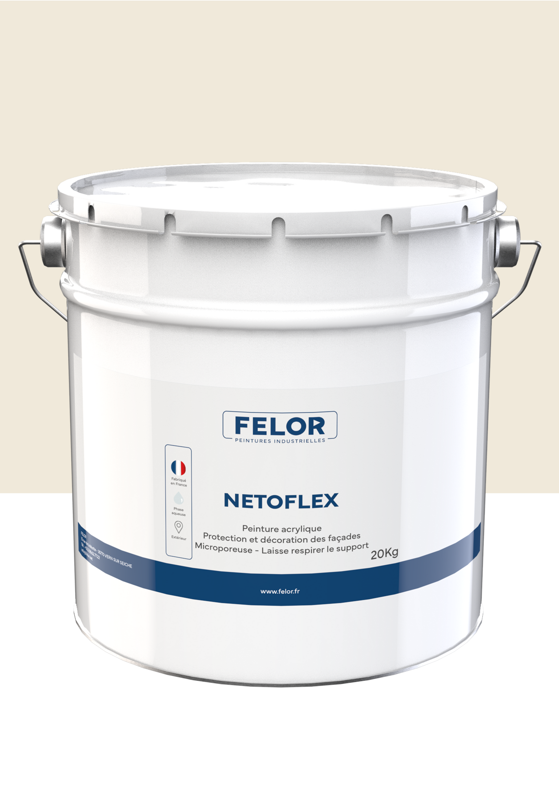 NETOFLEX est un revêtement plastique semi-épais qui s'applique sur supports neufs, anciens ou déjà peints. NETOFLEX est recommandé en rénovation afin de masquer le faïençage, les microfissures ou garnir un support structuré. Il est impératif d'appliquer au préalable une couche de fixateur NETIFIX sur fonds peu ou non absorbants et anciennes peintures.