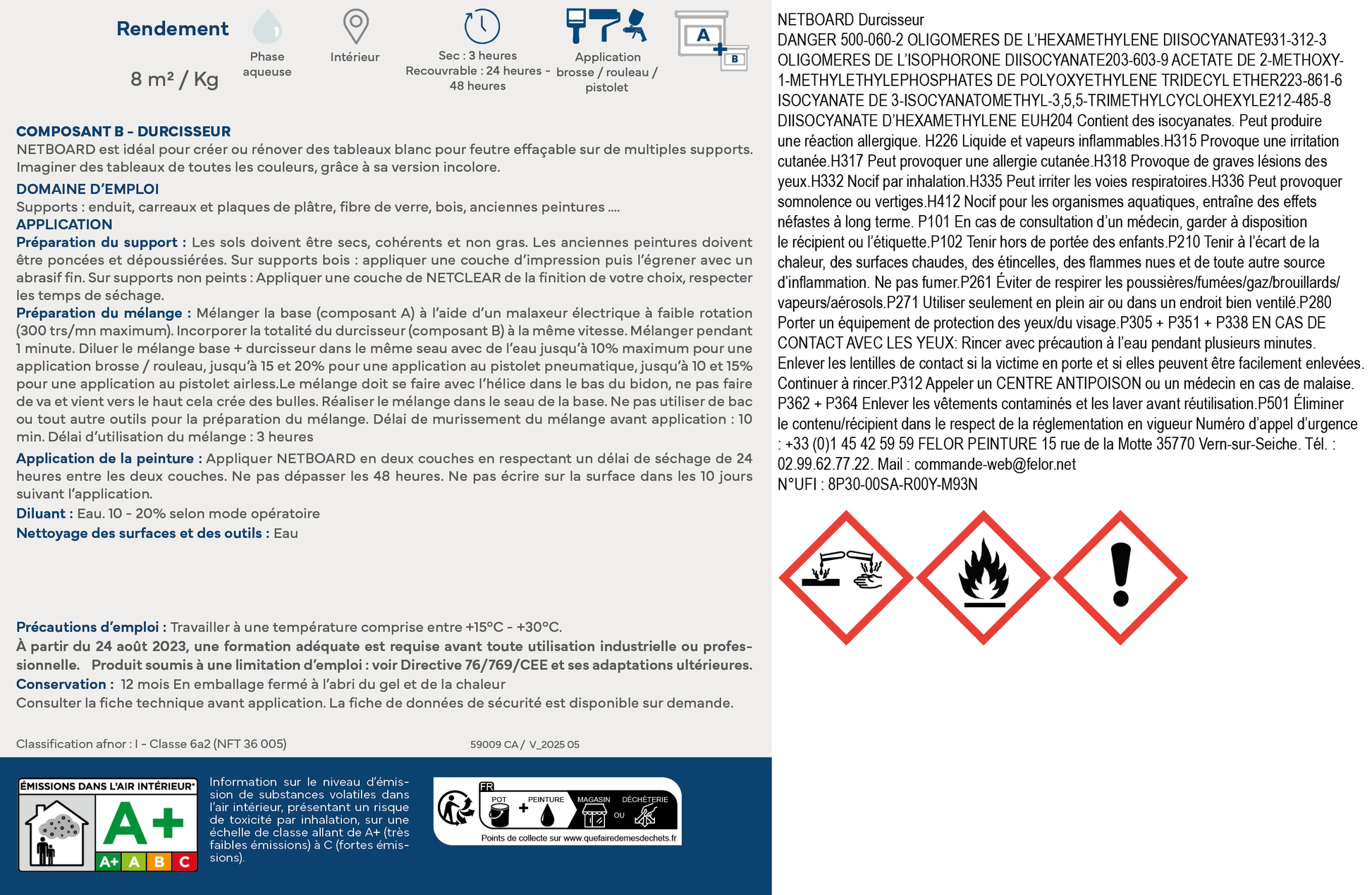 NETBOARD est une peinture bi-composant. Mélanger la totalité des deux composants.