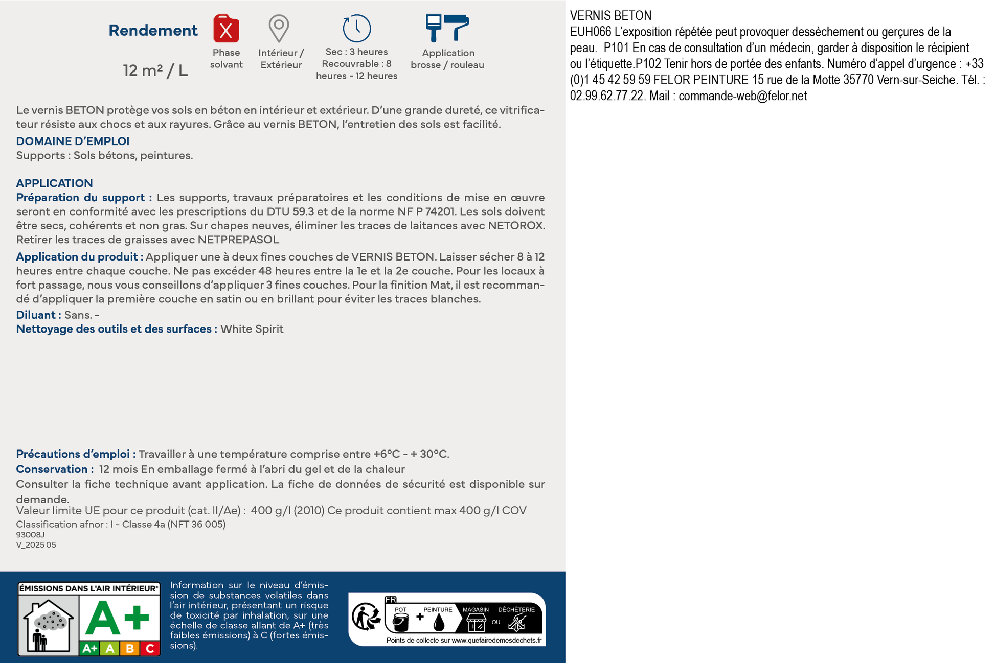 Le VERNIS BETON protège vos sols en béton en intérieur et extérieur. D'une grande dureté, ce vitrificateur résiste aux chocs et aux rayures. Grâce au VERNIS BETON, l'entretien des sols est facilité.